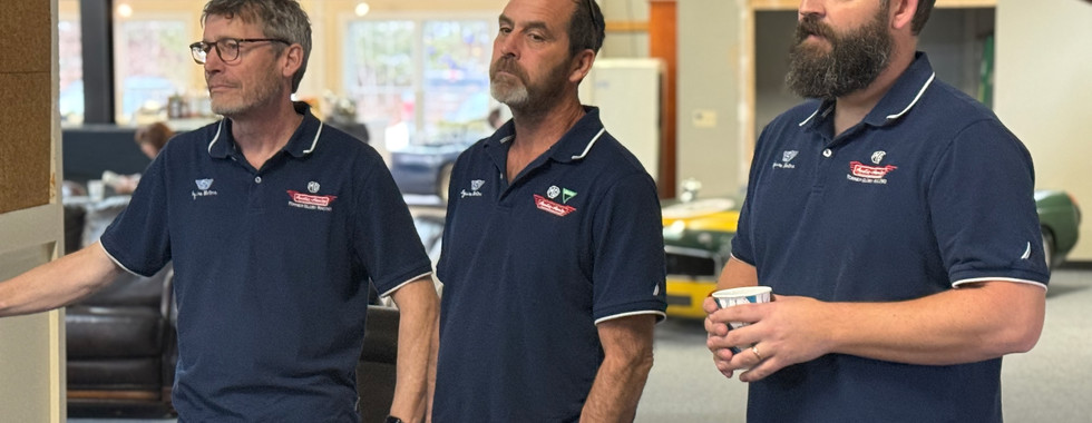Some 50 people gathered on Saturday, January 10, for the club’s inaugural Tech Talk. The venue was the event room at Squire Motors’ spacious new home on Rte. 90 (aka Farwell Drive) in Rockland. The speaker was Steve Woodsum, Prof. Emeritus of History and Political Science at Southern New Hampshire University and proprietor and chief wrench at Great Northern Motor Works in Kents Hill. His presentation’s title—‘Sports Car Connections—Those are the Brakes!’—was sufficiently broad to allow Steve to tell stories about growing up in Connecticut with Bob Sharp’s racing team before segueing to an in-depth discussion of braking systems, drum & disc, and the care & feeding of vintage sports car brakes. The professor held the audience rapt for two hours, with a Q&A session, and then at 4:00 vacated the stage for a rock band. MMSCC extends great thanks and appreciation to Steve for his expertise, humor and willingness to share; and to Squire Motors for being first-class hosts.